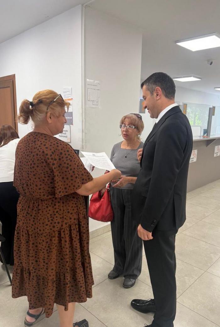25.09.2025Շրջայց «Կենտրոն» սպասարկման գրասենյակումԱյսօր՝ սեպտեմբերի 25-ին Կադաստրի կոմիտեի ղեկավար Սուրեն Թովմասյանը կոմիտեի պատասխանատուների հետ հերթական շրջայցը կատարեց «Կենտրոն» սպասարկման գրասենյակում, հանդիպեց աշխատակիցներին, լսեց գրասենյակ այցելած քաղաքացիներին:Ավելին